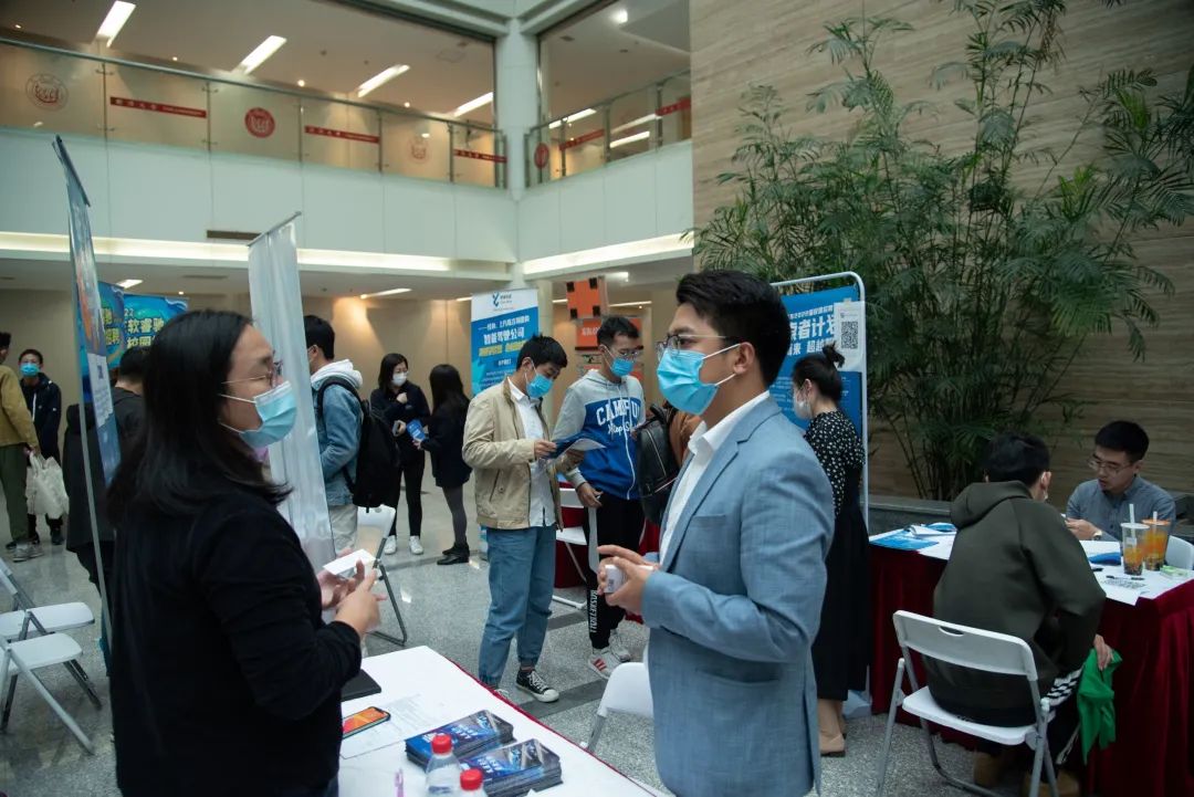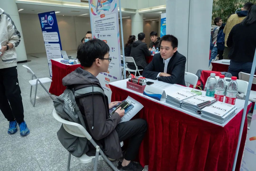 招聘会于14点开始,现场秩序井然,氛围热烈。同学们与HR面对面交谈,自我展示的同时也深入了解企业岗位需求及个人发展前景等事宜。