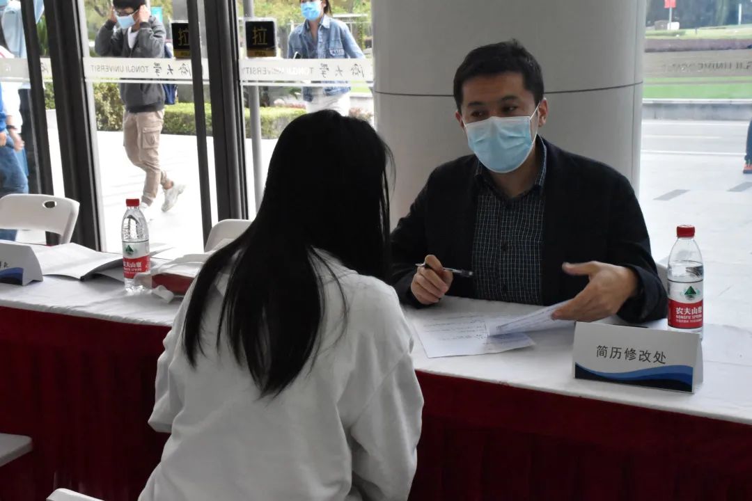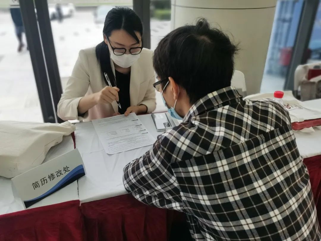 此次招聘会现场还增设了“简历修改区”,由来自校内外的6位专业老师为学生现场修改简历、提供就业指导, 40余位同学接受了简历修改等职业发展指导。
