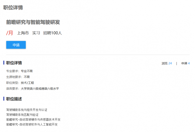 上海大众汽车有限公司实习招聘