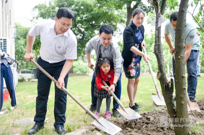 最后,校友们合影留念,并共同种下了象征美好祝愿的桃树、李树,祝福学院“桃李满天下”。同济汽车人扎根祖国大地,一起为中国汽车工业的崛起而奋斗。