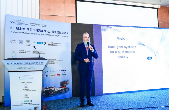 副校长顾祥林教授为第三届上海—斯图加特汽车及动力技术国际研讨会做开幕致辞。