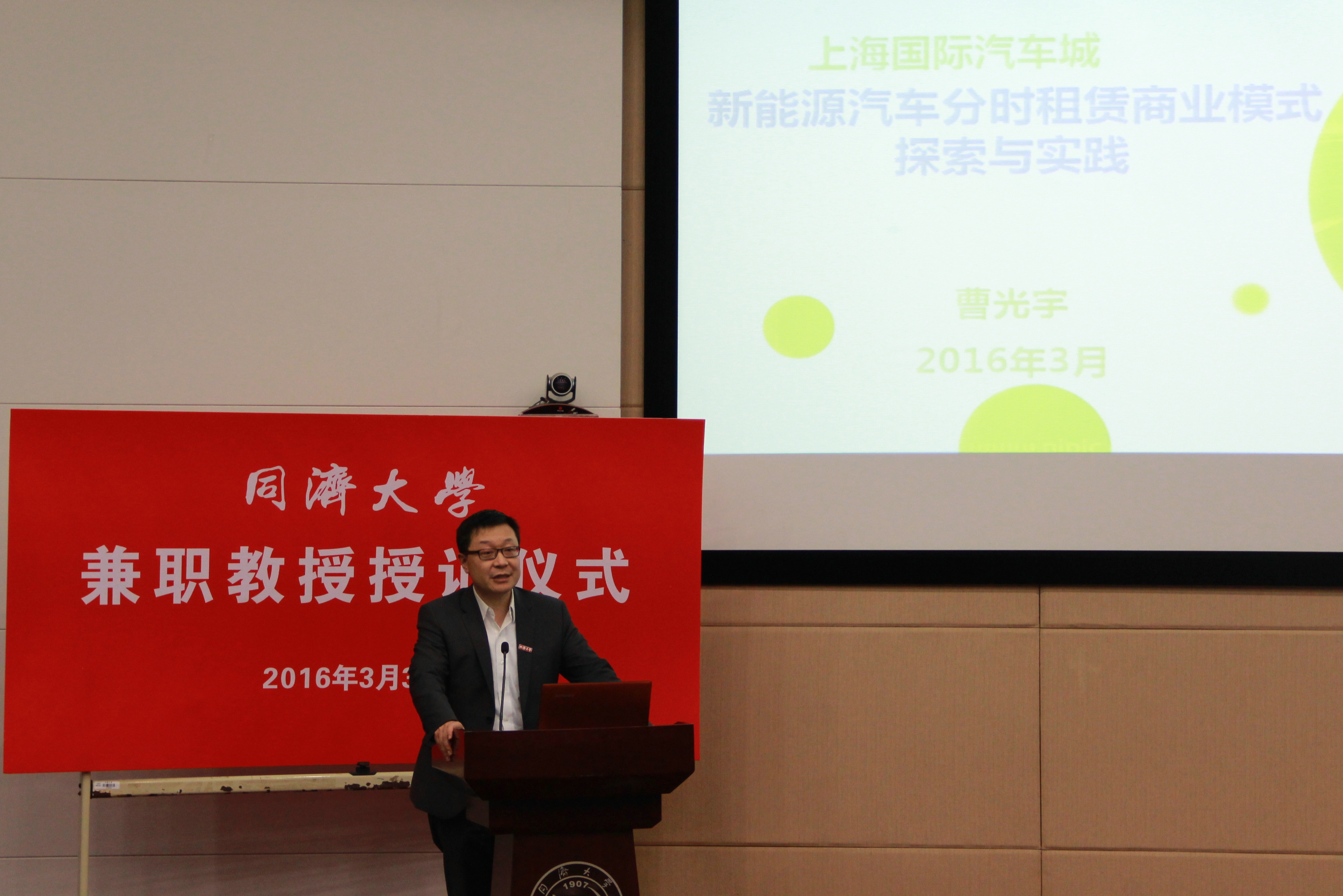 聘任仪式结束后,曹光宇教授给到场师生作了题为“新能源分时租赁商业模式探索与实践”专题讲座,全面介绍了电动汽车分时租赁的概念和历史,并结合电动汽车的发展现状,探索了符合未来电动汽车发展趋势的、可持续化的商业模式。提出了将高可靠低成本的小型纯电动汽车、便携完善的停车充电服务网点及互联网服务平台相结合的城市公共交通的新途径。