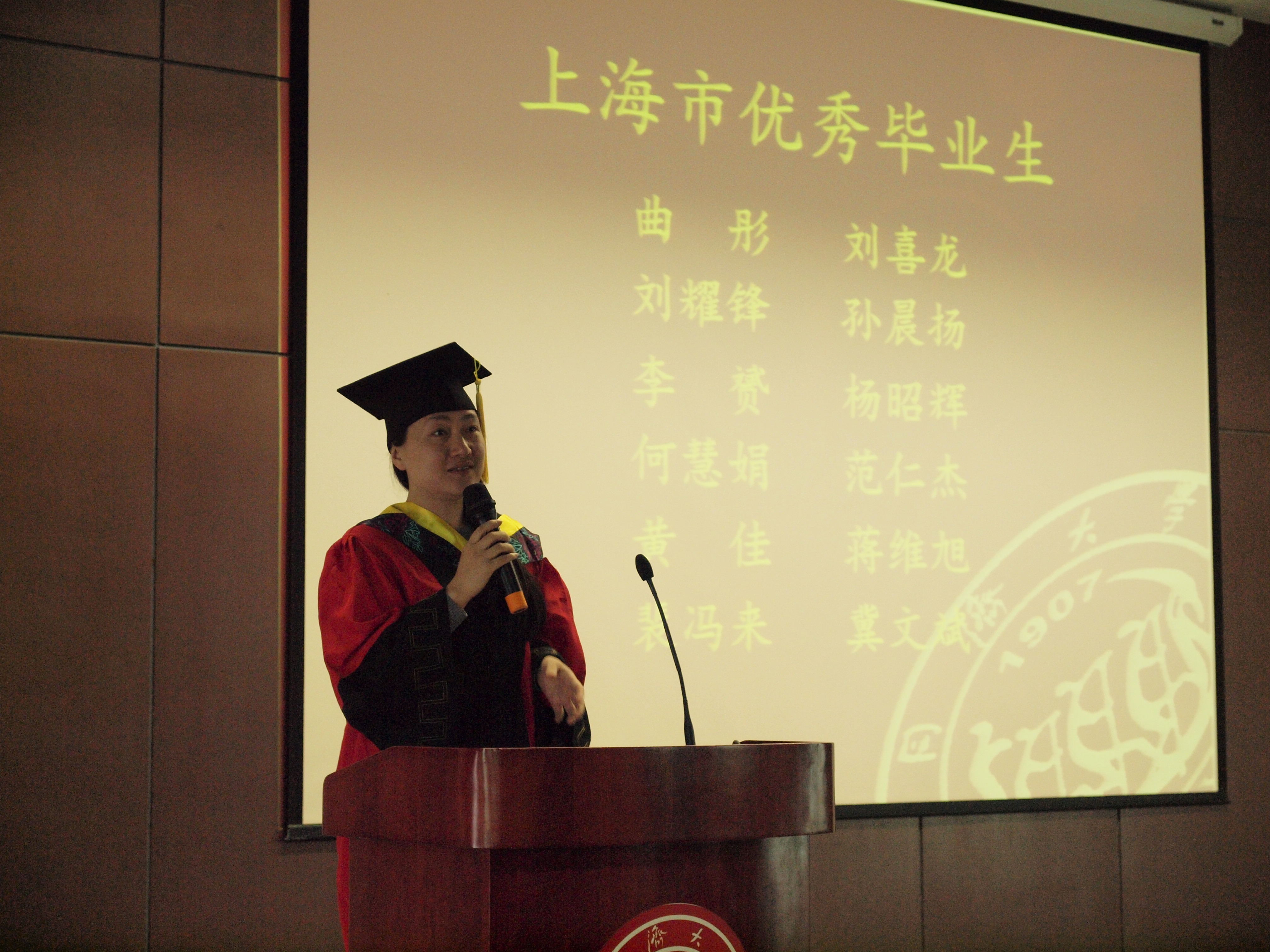 党委副书记史成宇老师对学院2015届毕业生的去向作了简要介绍。上海市优秀毕业生李赟同学,作为毕业生代表作发言。他代表全体毕业生对偷拍视频