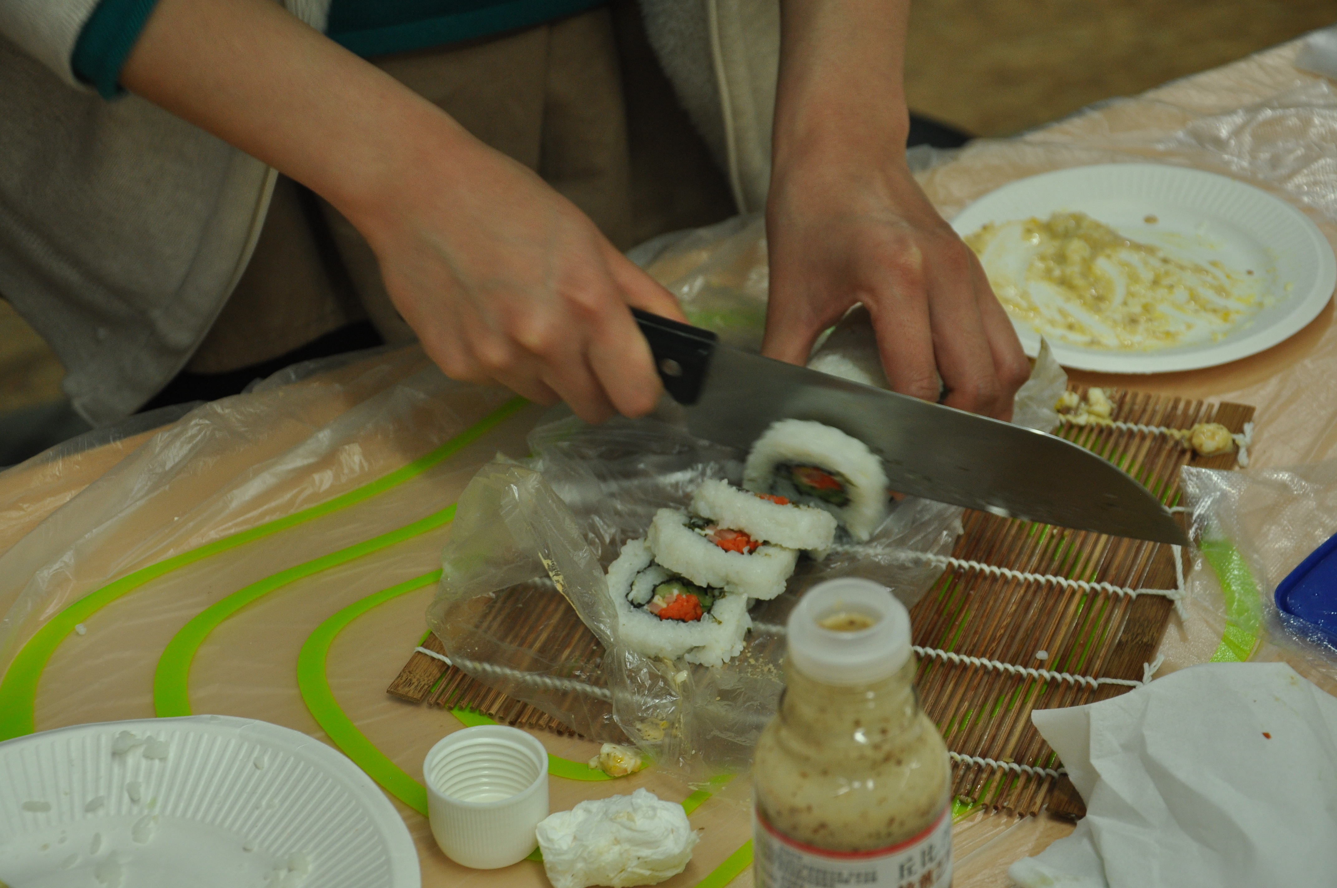 A311正式开始,一边是激情四溢的棋牌桌,一边是放满食材的料理区,纸牌与桌面摩擦的声音,刀具与食材摩擦的声音,与在场所有同学的欢声笑语融合在一起。女生们分组进行寿司和水果拼盘的制作,大家都展现出了自己卓越的料理技巧和精湛的刀法,令围观的同学在赞叹不已的同时又大饱口福。也有不少男生上前展露一下自己的厨艺,或者尝试一下寿司的制作,女生们都热心地前去帮忙。棋牌大赛结束后,参赛者纷纷前来品尝女生们做的寿司和水果拼盘,好评连连。不知不觉中,女生节闭幕联谊会就在其乐融融的氛围中结束了,同时也宣告了“未闻花名”偷拍视频