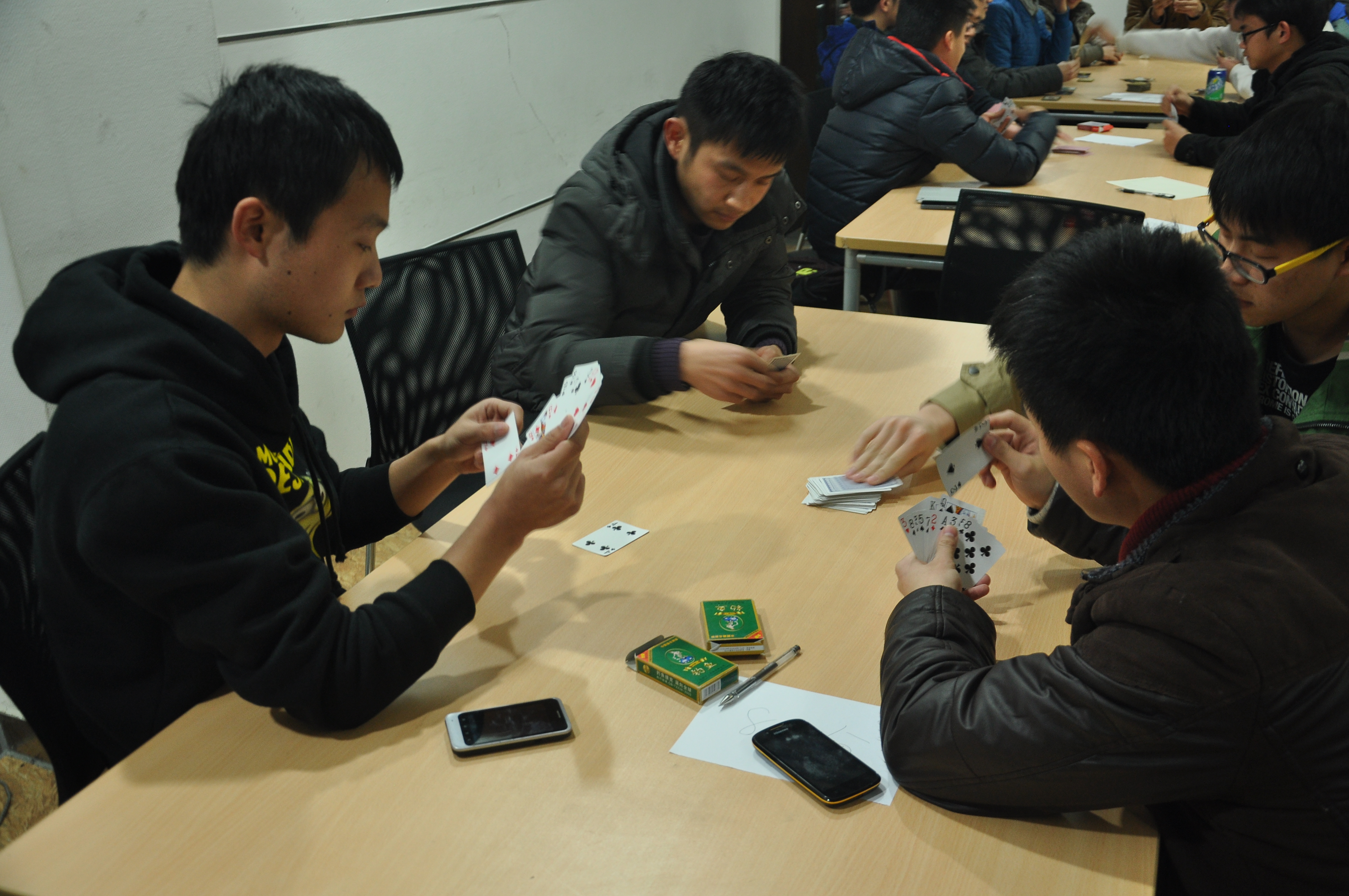 棋牌大赛也纳入到女生节活动中。作为开学生活的调剂,本次棋牌大赛分别举行了80分、斗地主以及三国杀3v3这几类比赛,通过这些竞技性较强的棋牌类桌游,使同学们在比赛中开动脑筋,培养团队合作意识,放松身心劳逸结合。三个赛种分别于周二、周四晚进行了初赛,而决赛则于周五晚与女生节闭幕联谊会在偷拍视频