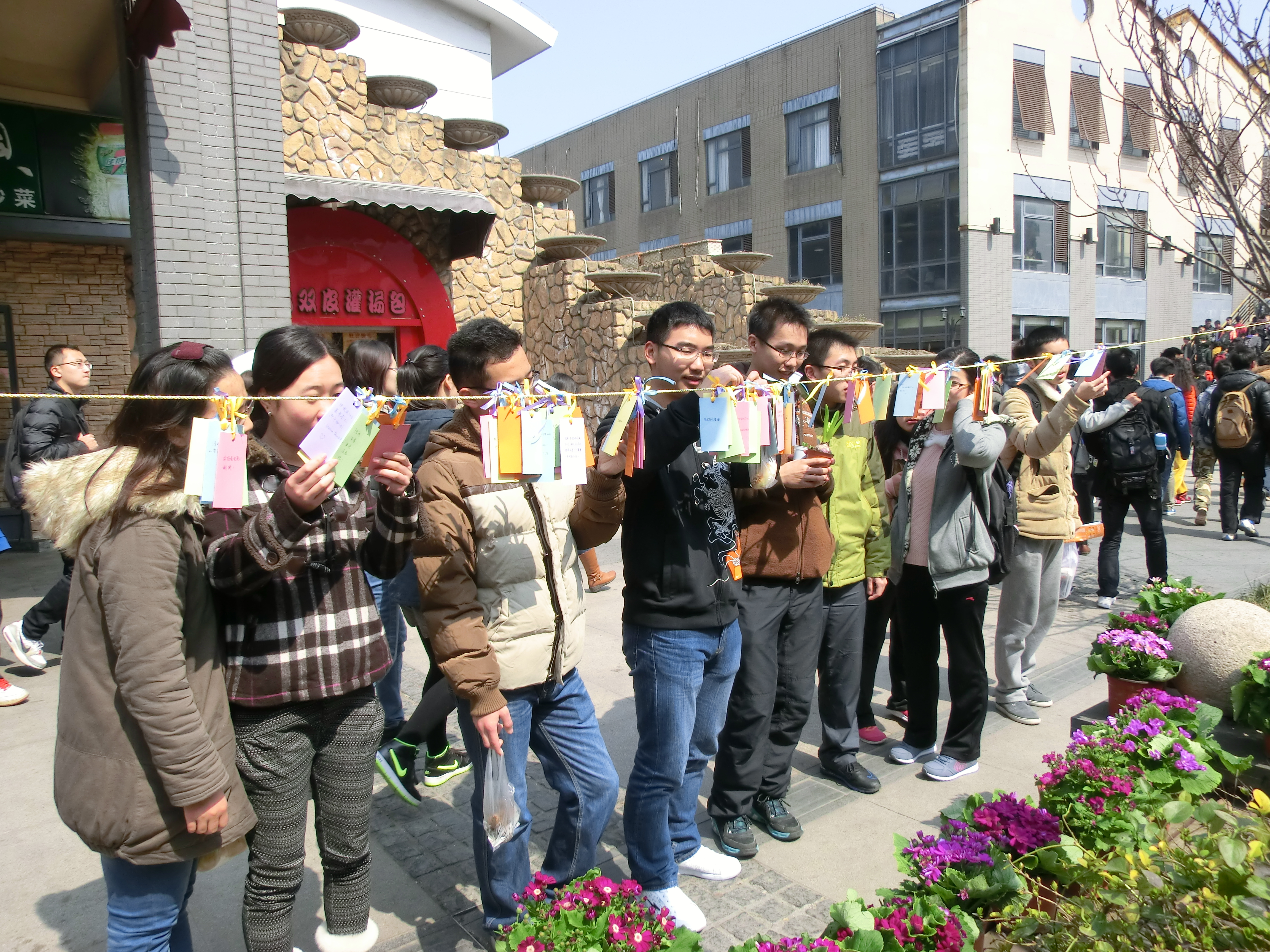 女生提前写好的心愿卡挂在绳子上,并在新天地、寝室楼道里进行展示,由男生们观阅挑选,摘下心愿卡后便为其主人实现她的愿望。在周二的新天地活动当天,往来人流络绎不绝,而时时都有驻足欣赏心愿卡的同学,或许是出于好奇,或许确实想为女生们带去一份心意,无论如何都将为挂卡人和摘卡人创造出一段美好的邂逅与回忆。