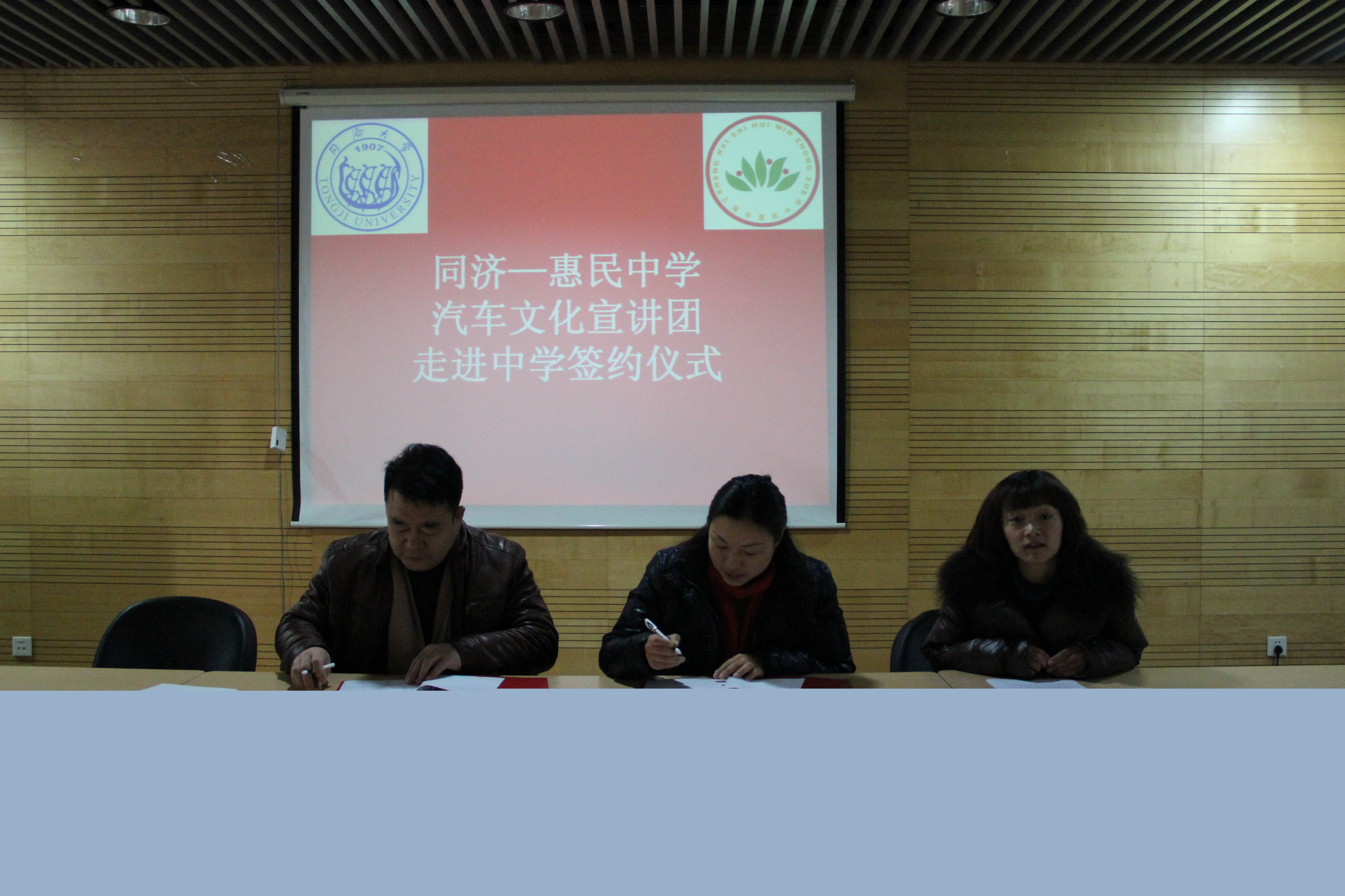 1月17日上午,上海市惠民中学校长孙广波一行走访偷拍视频 ,为了让中学生走进大学城,争取通过与大学的合作,开展适用于中学生,能够增加他们渴望了解大学的兴趣,提升中学生人文素养、实践能力、创新意识且有意义的实践教育活动。同时,使大学生更好地利用现有资源服务于社会,发挥偷拍视频 汽车文化宣讲团自身特长,通过活动凝聚团队,探索实现“知识,能力,人格”三位一体的育人模式。由偷拍视频 党总支副书记曹静老师同孙校长签署了汽车文化宣讲团走进中学系列活动共建协议。