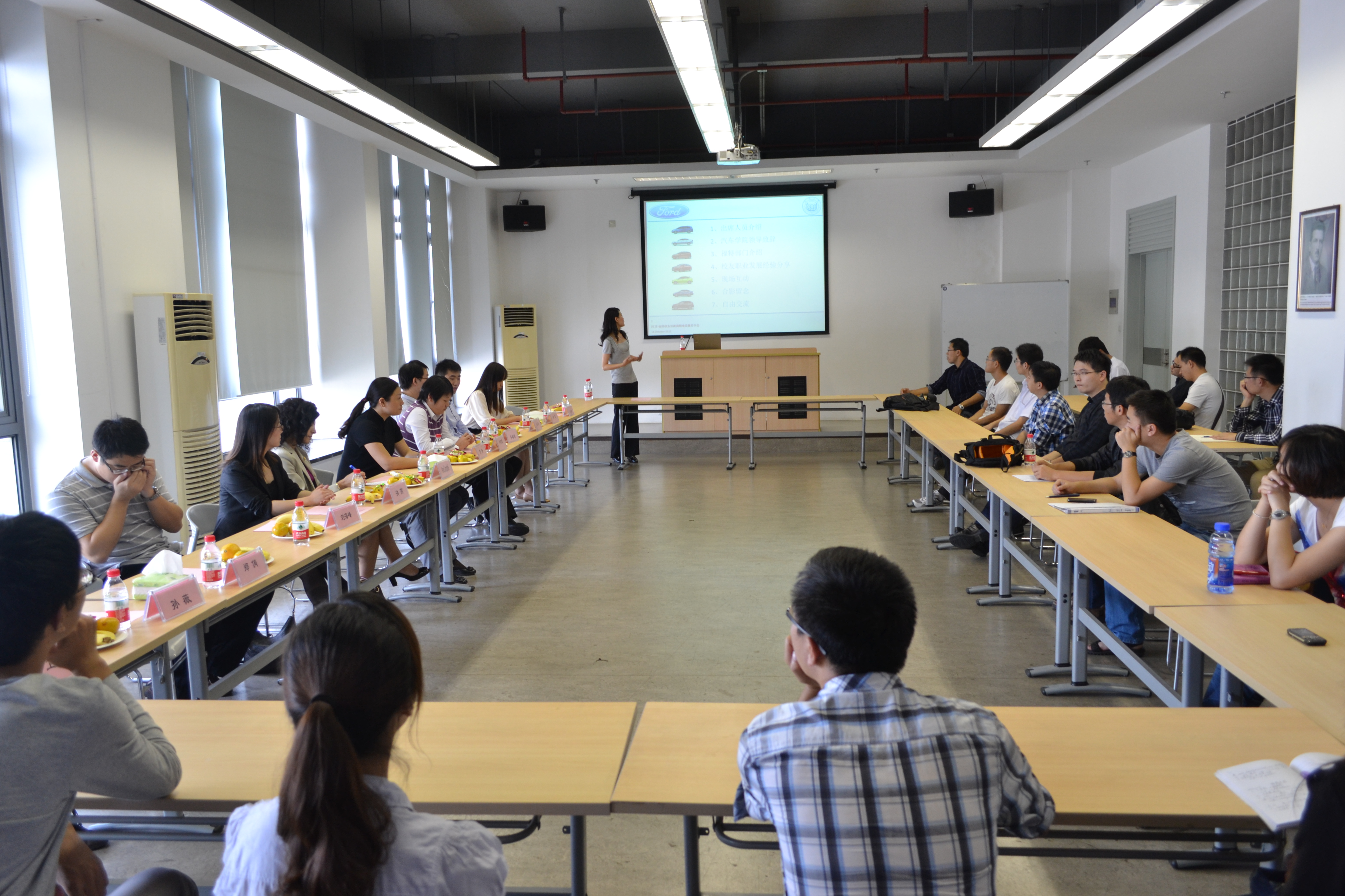 10月16日,偷拍视频 第二届福特日在偷拍视频 新能源汽车工程中心举行。偷拍视频 党总支副书记曹静,福特亚太及非洲地区总部产品开发副总裁Kumar Galhotra,人力资源副总裁Kiersten Robinson出席会议并致辞。福特亚太及非洲地区人力资源培训与发展经理洪燕向同学们介绍了今年校园招聘的相关事宜,现场学生踊跃提问,各位嘉宾结合自身体会诠释了福特文化。嘉定校区近三百名学子参加,会议由学生会主席赵汉卿同学主持。分会场分别举行了福特新车展示及新天地文艺演出、福特篮球友谊赛、福特职场经验分享会等活动。