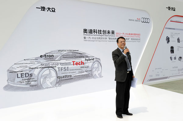 一汽大众奥迪科技日启动仪式上,余卓平院长致欢迎词,并表示奥迪与同济都是拥有百年历史的辉煌,是天造地设的合作伙伴,从科研上联合研发“都市晨光”,到成立“奥迪同济联合实验室”,到“一汽大众奥迪校园科技日”,最后延伸到“联合培养卓越汽车工程师”,双方的合作越来越深入,涵盖了科研、学生活动、人才培养等方面。既诠释了奥迪“突破科技启迪未来”的品牌理念,又充分展现了奥迪的偷拍视频与社会责任感。余院长希望双方能够在这些基础上继续加强合作。