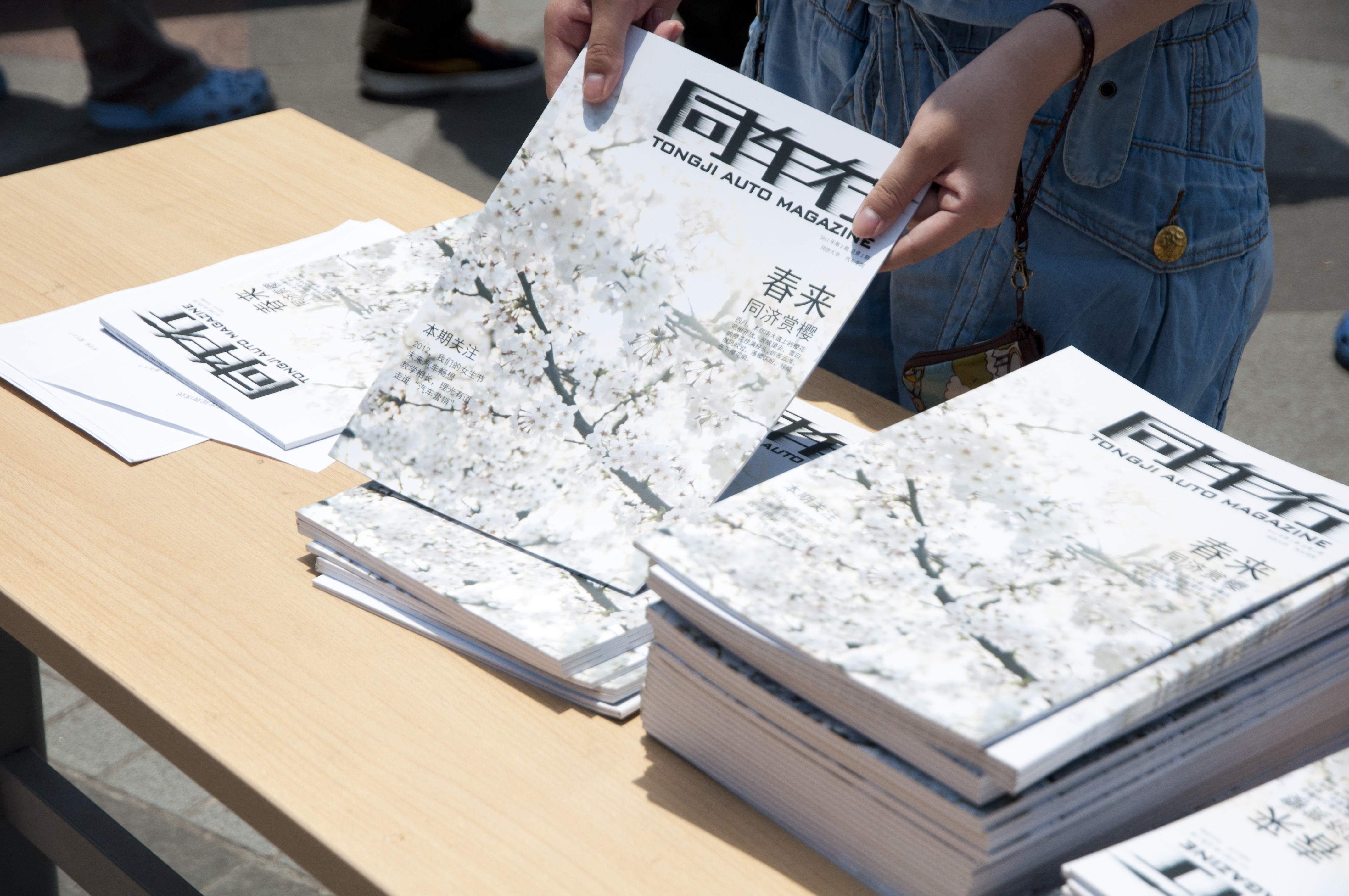 11:30 发布会准时开始,在主持人的号召下,不断有同学加入到活动中来,到了12:00现场气氛达到了高潮,各个游戏摊位前都围满了参与游戏的同学,抽奖转盘前更是排起了长龙。中午灼热的阳光丝毫没有减退同学们参与活动的热情,随着幸运大奖一个接一个被抽出,现场传出了一阵阵惊呼声。现场的200本杂志《同车行》也在很短的时间里就被领取一空,本次《同车行》发布会暨同济汽车设计研究院推介会取得了圆满成功。