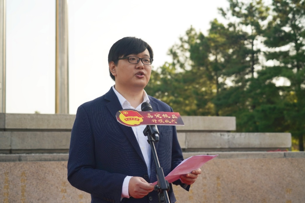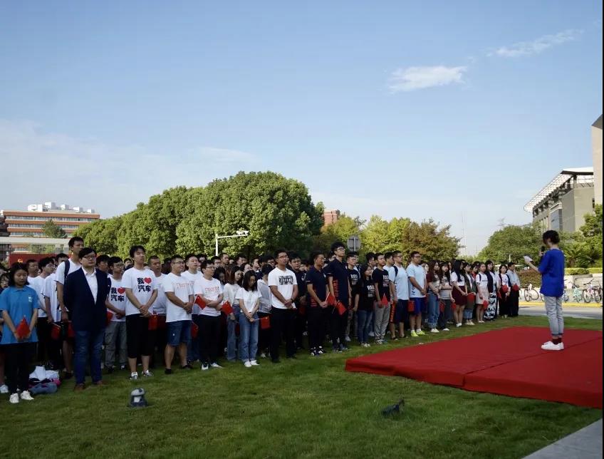 庆祝中华人民共和国成立71周年主题升旗仪式在嘉定校区升旗台举行。嘉定校区党工委副书记覃文忠、管委办主任王晓国、安亭镇团委书记吴力,各学院师生代表共计300余人参加了升旗仪式。