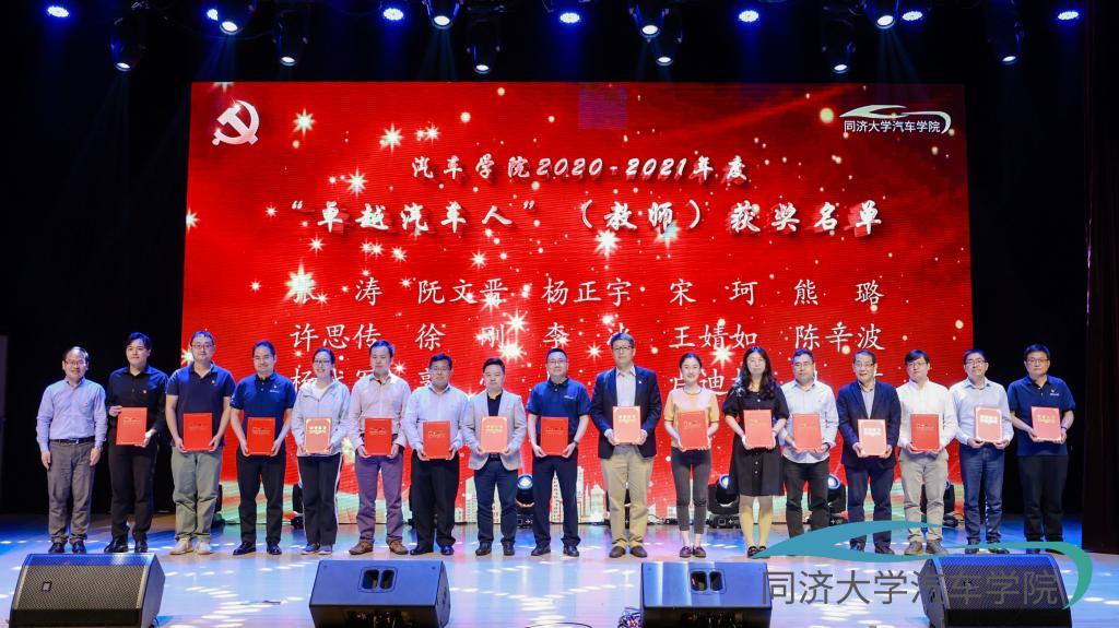 晚会还进行了“卓越汽车人”和“卓越汽车团队”的颁奖仪式,以此表彰上一年度在教学科研、实践创新、文体竞赛、学生活动等方面取得优异成果的师生个人及团队,60余名师生代表上台领奖。