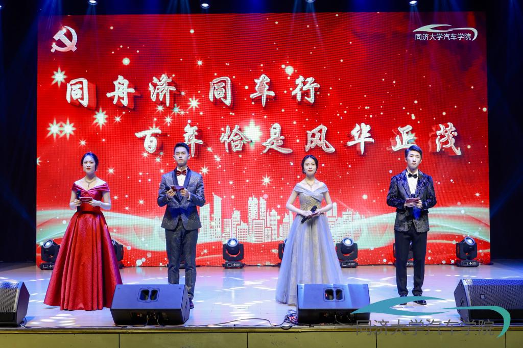 本场晚会以回顾建党百年历史为主线,邀请全国知名车企优秀青年代表讲述“党旗下的汽车故事”,再现民族工业在党旗引领下的奋斗历程;邀请共建中学共上一台思政大课,推进大中小思政一体化建设进程;加强学科交叉,融入艺术元素,夯实学院美育工作。生动感人的车企奋斗故事和精彩纷呈的节目构建起一堂振奋人心的“微党课”,激励同济汽车师生在新时代中共同谱写民族工业的新篇章。
