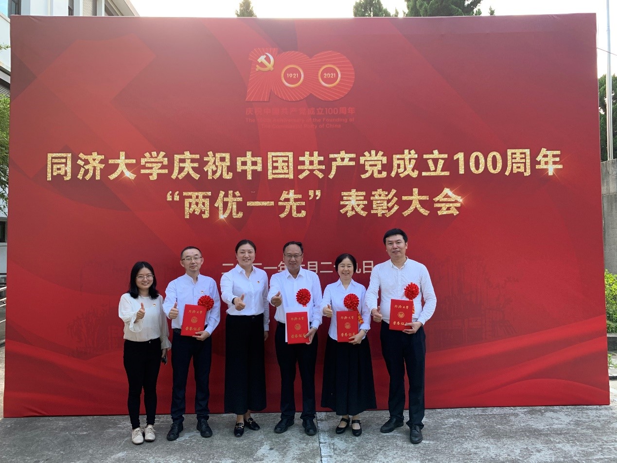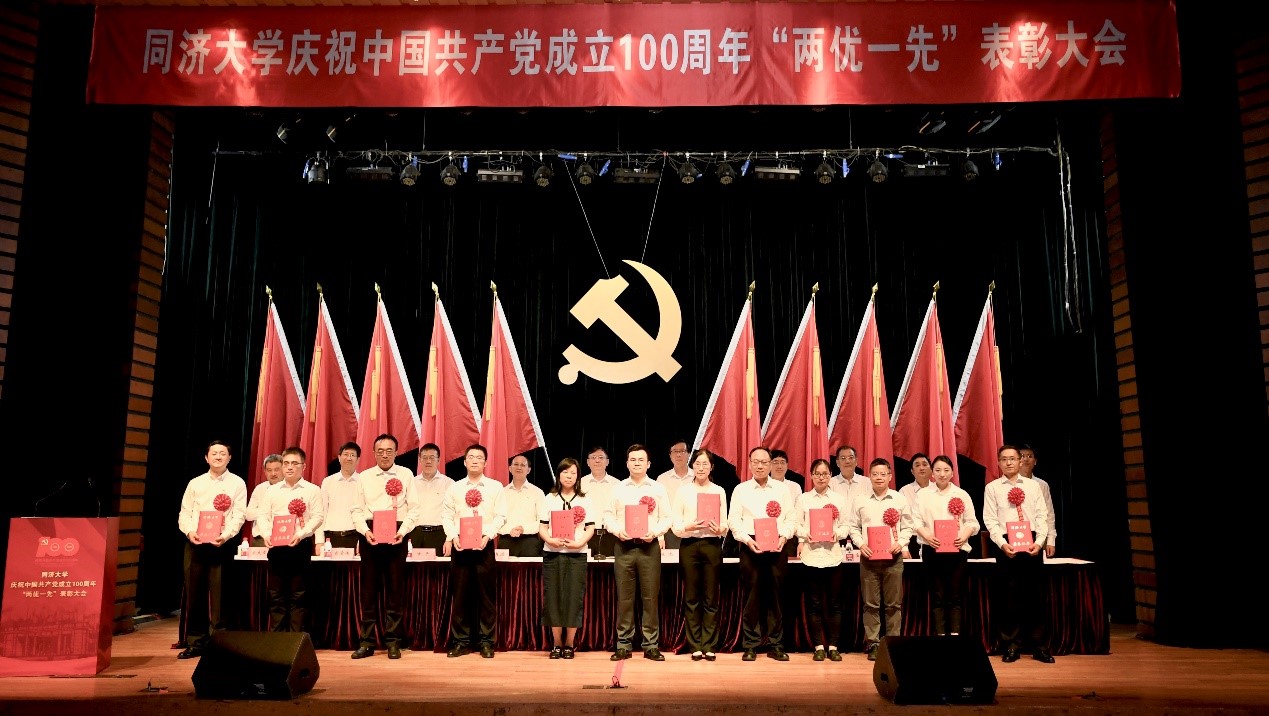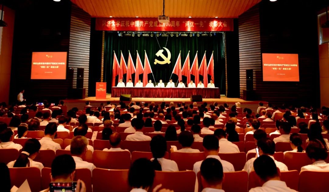 庆祝中国共产党成立100周年“两优一先”表彰大会在四平路校区一·二九礼堂隆重举行,回首中国共产党团结带领全国人民不懈奋斗的百年光辉历程,表彰学校涌现出来的一批优秀共产党员、优秀党务工作者和先进基层党组织,并为“光荣在党50年”的老同志代表颁发纪念章。校党委书记方守恩、校长陈杰等在校党员校领导,校党委委员、纪委委员出席大会,方守恩发表讲话,陈杰主持大会。学院获奖师生、党员代表等参加大会。