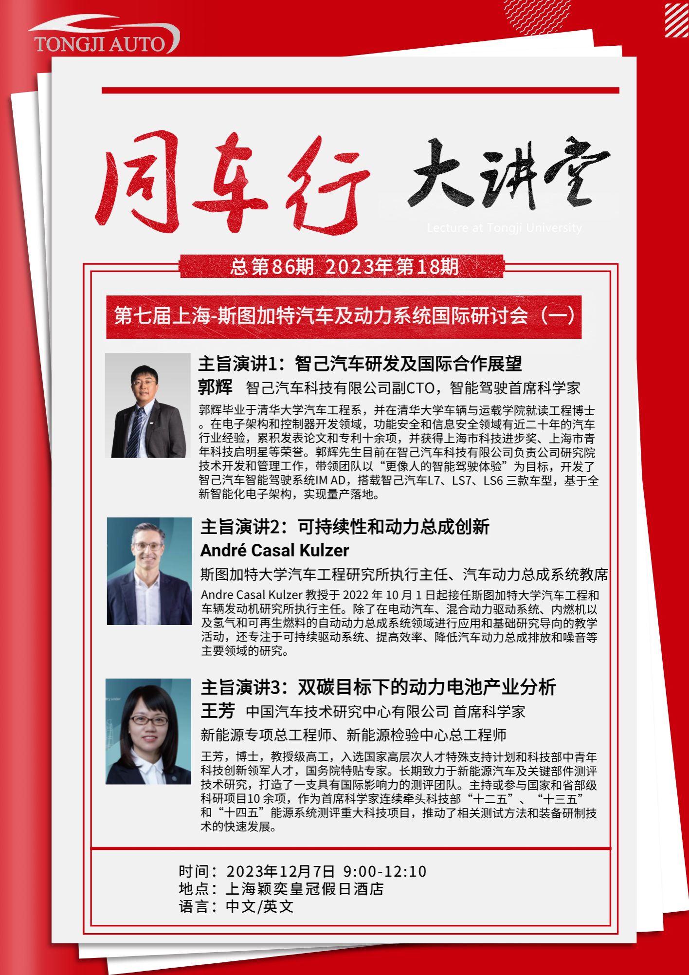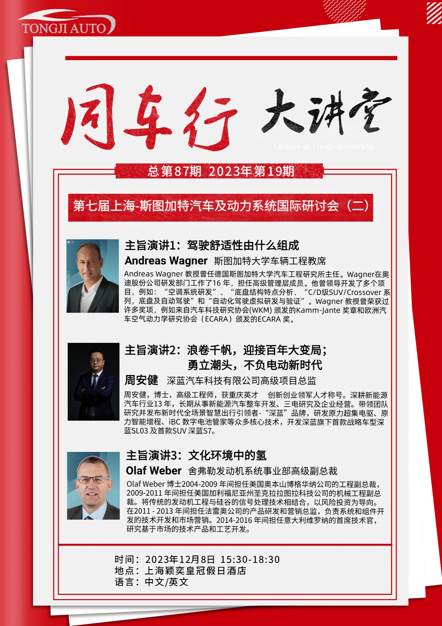 “同车行”大讲堂第八十六、八十七期|第七届上海-斯图加特汽车及动力系统国际研讨会