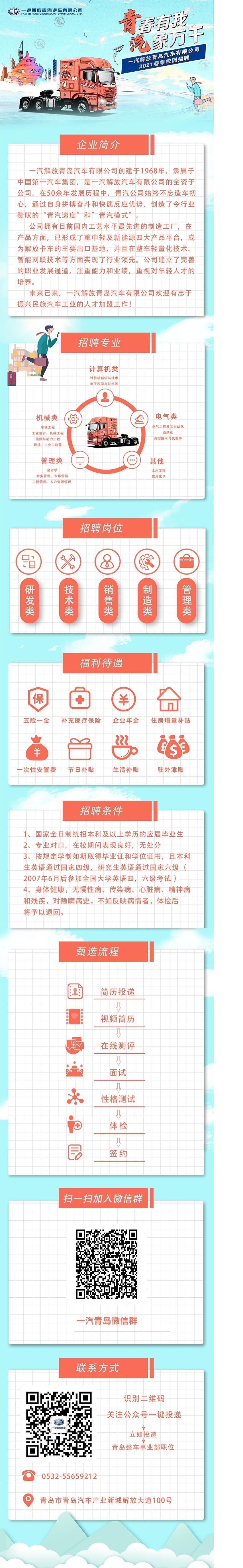 一汽解放青岛汽车有限公司2021春季校园招聘