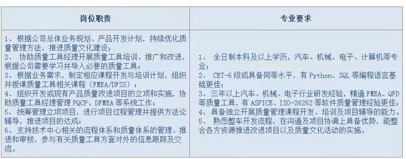上汽乘用车-质量工具岗招聘,校招社招均可,发送简历至[email protected]