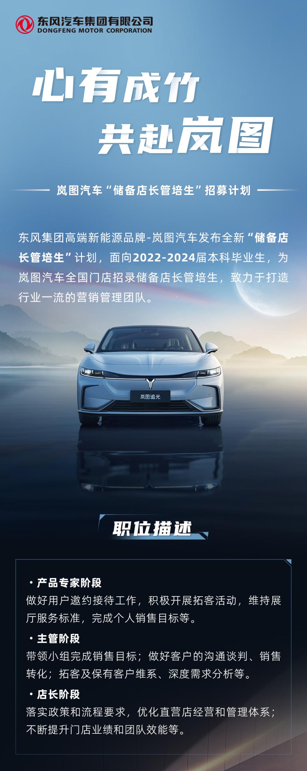 岚图汽车“储备店长管培生”招募计划